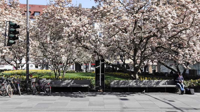 Infosteele for Jewish shopkeepers on the Kaiserstraße and Kaisergärtchen with its fabulous Magnolia trees.